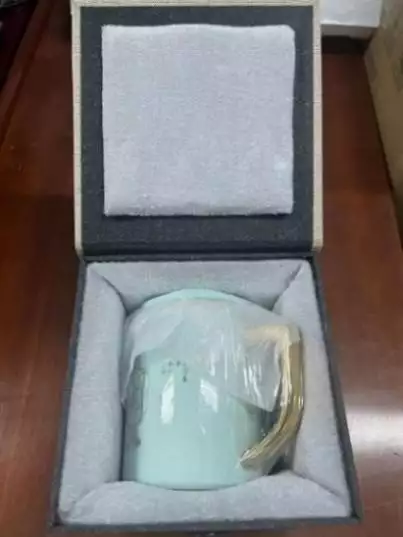 “好客杯”选用高档青瓷为原材料进行高温烧制,瓷质光润细腻、造型端庄雅致。杯身采用780℃高温金线烧制吴道子版本孔子像,同时烧制出的《论语》经典名句采用王羲之体展示。齐鲁“孔孟之乡、礼仪之邦”的深厚文化底蕴,奉献出此款“好客”的茶器之礼。