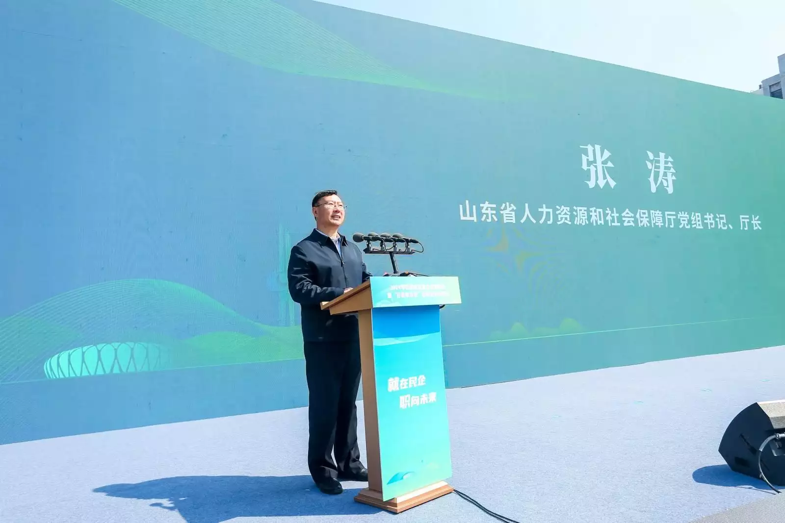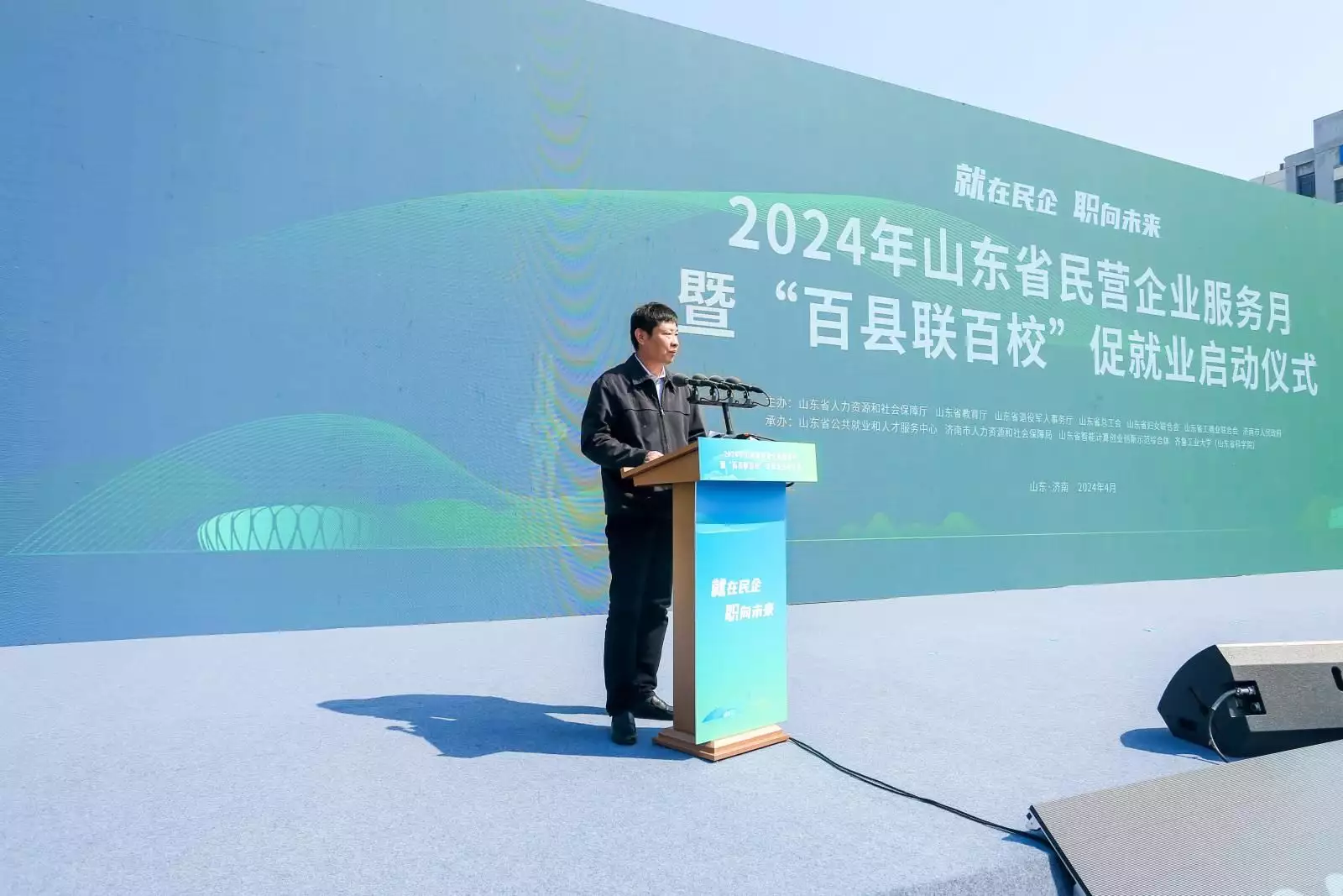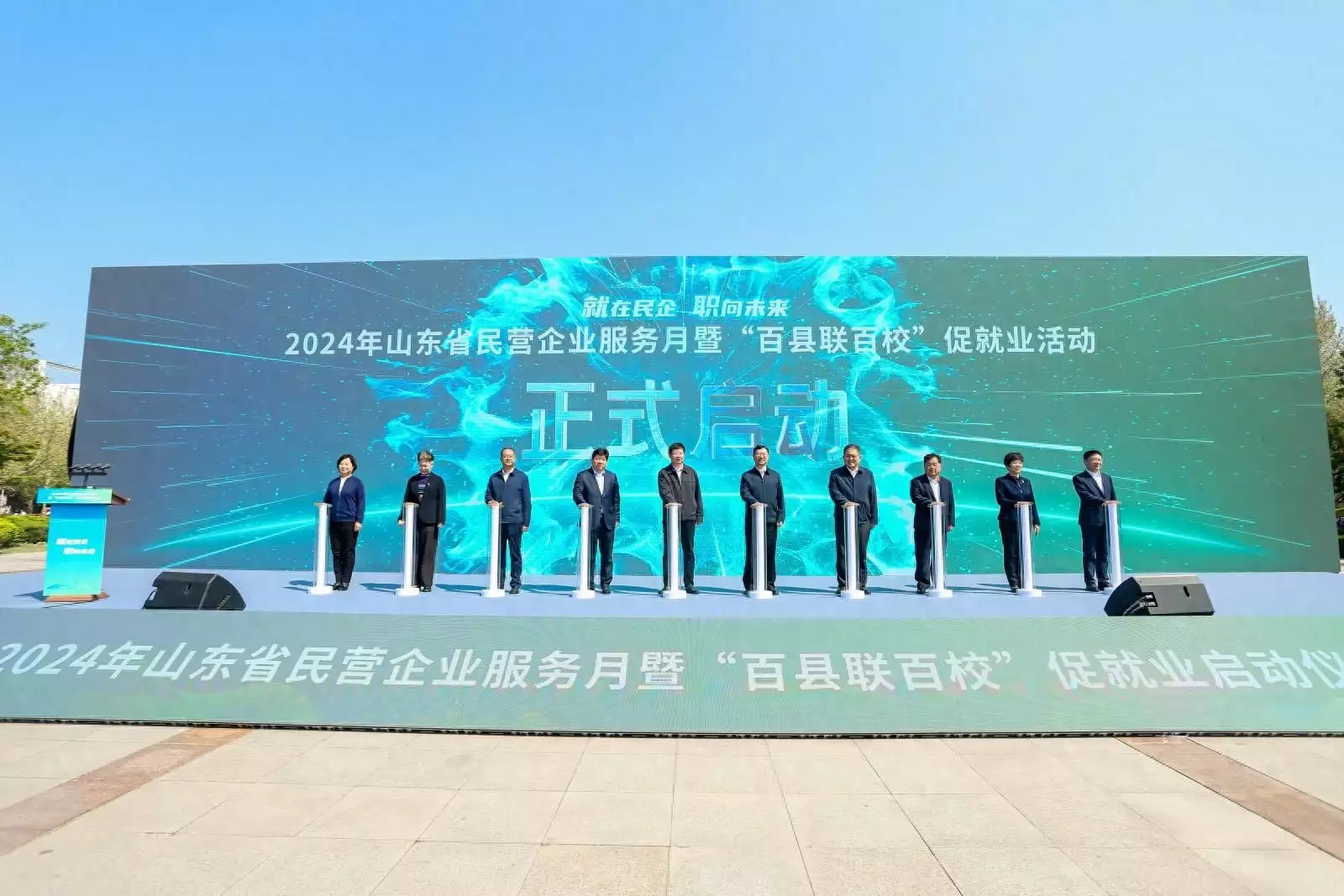 为促进民营企业高质量发展,促进高校毕业生高质量充分就业,4月12日,2024年山东省民营企业服务月暨“百县联百校”促就业启动仪式在齐鲁工业大学(山东省科学院)举行。人力资源社会保障部就业促进司一级巡视员尹建堃,省人力资源社会保障厅党组书记、厅长张涛,济南市人大常委会副主任黄贵利出席活动并讲话。