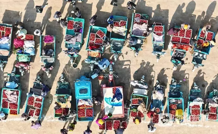 《油桃映红致富路》2024年4月27日,在山东省莱西市院上镇王家庄的油桃交易市场,农民在销售刚刚采摘的油桃。近年来,莱西市充分利用当地土壤、气候特点,发展果树种植,建起油桃交易市场,吸引了众多游客和客商前来采摘和选购,拓宽了农民的增收渠道。张进刚摄
