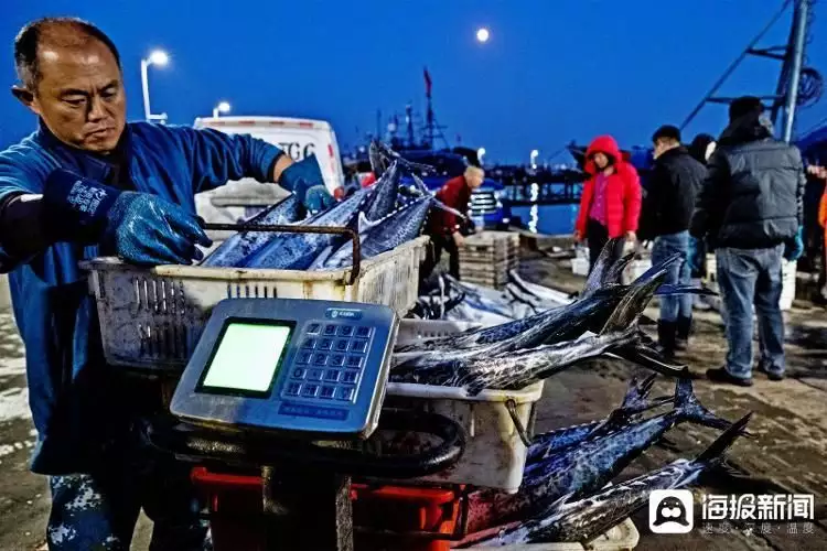 《鲅鱼喜获丰收》2024年4月26日,山东省青岛市沙子口国家中心渔港,出海的渔民们早上四点开始卸下捕捞的大鲅鱼,有许多买家前来抢购大鲅鱼。宋林继摄