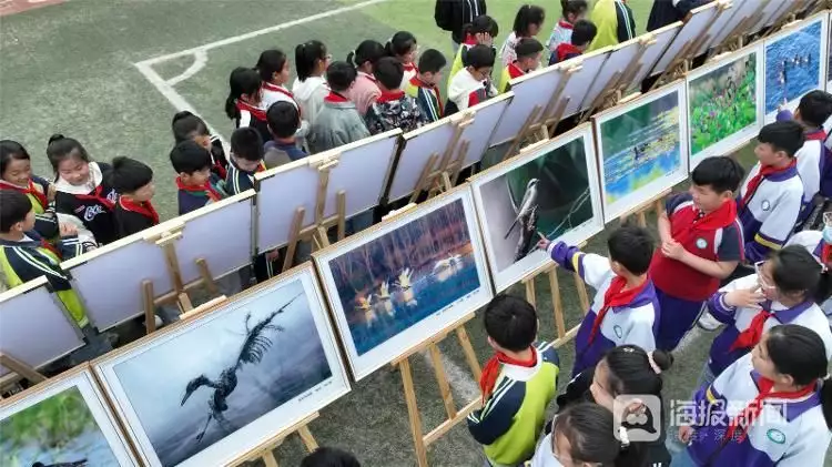 《“护佑候鸟迁飞”摄影展进校园》2024年4月23日,山东省临沂市郯城县马头镇求是小学师生在观看“护佑候鸟迁飞”摄影展。此次展览,共展出摄影师刘宗强野生鸟类摄影作品50余幅,通过摄影展增强同学们爱鸟护鸟意识,引导学生从小参与鸟类及自然生态保护活动,促进生物多样性保护以及人与自然和谐发展。房德华摄