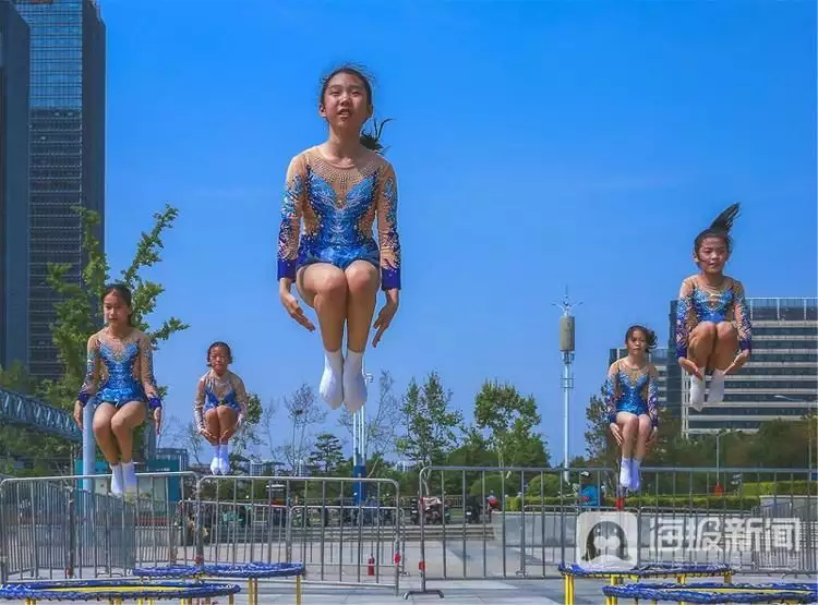 《全民健身正当时》2024年4月27日,2024年济南市全民健身主题系列活动在山东省济南市奥体中心广场举行。蹦床、石锁、掼蛋比赛等60余项现场互动体验项目异彩纷呈,吸引众多健身爱好者。宣文凤摄